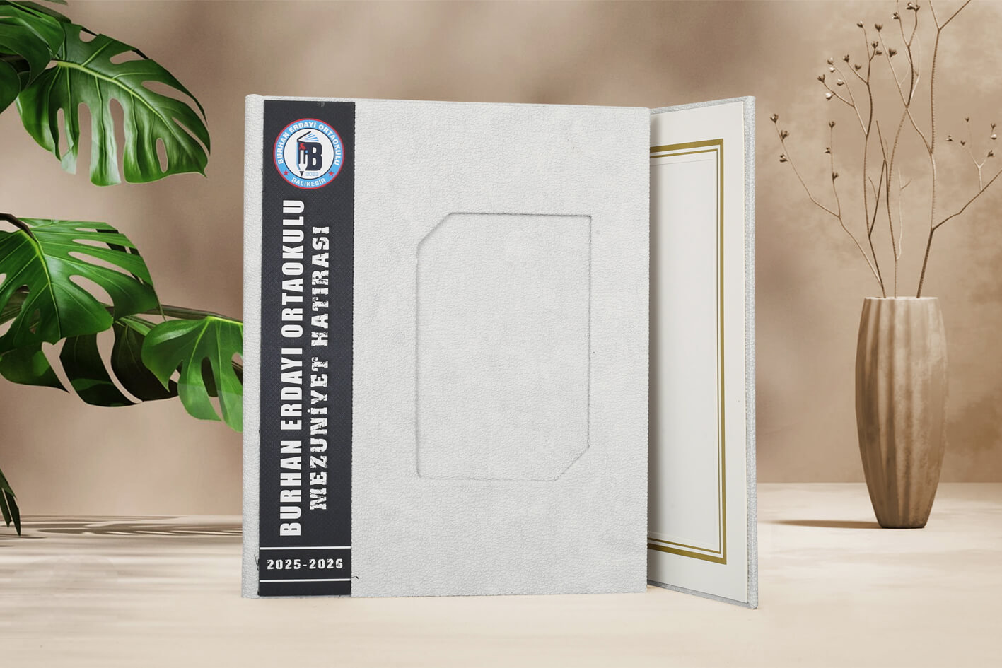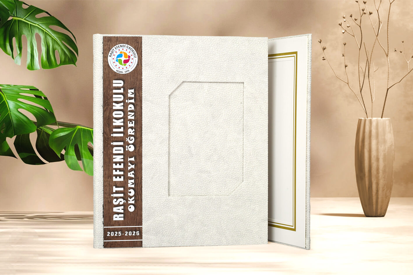Albüm içinde 3 adet 15 x 21 cm fotoğraf kullanılabilir. Paspartular geçmelidir. Kapak fotoğrafı 10 x 15 cm’dir. Kapaklarda kullanılan çıtalar 4,5 x 25 cm ölçülerinde olup okul adı ve logosu basılabilir.