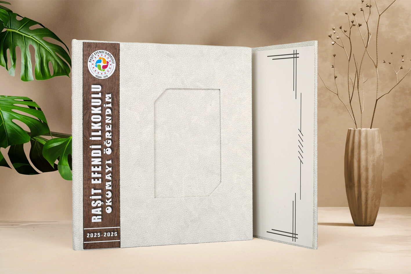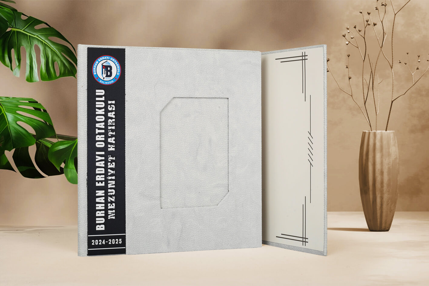 Albüm içinde 2 adet Dikey, 1 adet Yatay olmak üzere toplam 3 adet 15 x 21 cm fotoğraf kullanılabilir. Kapak fotoğrafı 10 x 15 cm’dir. Kapaklarda kullanılan çıtalar 4,5 x 25 cm ölçülerinde olup okul adı ve logosu basılabilir.